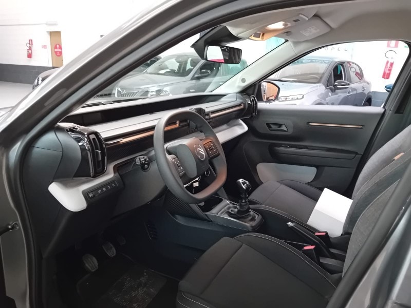 PRONTA CONSEGNA - AUTOVETTURA A KM0 UFFICIALE CITOREN ITALIA - IMMATRICOLATA 12/2025 - ALLESTIMENTO 100CV YOU - PREZZO REALE NON VINCOLATO A FINANZIAMENTO - SCHERMO CON ANDROID AUTO & APPLE CAR PLAY - Cerchi da 16‘’ con copertura Titanite (215/65 R16) - Copriruota integrale bicolore - Proiettori anteriori a LED - Luci diurne a LED - Maniglie esterne delle porte nere lucide - Montanti delle porte in nero opaco - Citroën Head-Up Display - C-Zen Lounge - Smartphone station: • Radio via smartphone (con App MyCitroën Play) • Comandi al volante e riconoscimento vocale tramite smartphone • Sistema di emergenza e assistenza Citroën Connect Box (rif. Sezione «Servizi Connessi») • 1 presa USB Type-C (ricarica rapida 3A) • 2 altoparlanti fila 1 - Interni in tessuto Urban Bronze + Happy tags - Decoro Bronze sul cruscotto e sui pannelli delle porte anteriori - Fissaggio ISOFIX sui sedili posteriori laterali e TOP TETHER (3° punto di ancoraggio) - Presa 12V verticale sulla consolle centrale - Ruote adatte al montaggio di catene da neve - Accensione automatica dei fari anabbaglianti - Fendinebbia posteriore - Specchietti retrovisori esterni regolabili elettricamente - Allarme quando le porte e il bagagliaio sono aperti - Chiusura automatica della porta durante la guida - Sportello del serbatoio con chiusura elettrica senza chiave - Climatizzatore manuale - Sospensioni Citroën Advanced Comfort® - Panca posteriore ribaltabile sdoppiata 2/3 - 1/3 - Alzacristalli elettrici anteriori con abbassamento sequenziale per il conducente e per il passeggero + alzacristalli posteriori manuali - Sedile di guida regolabile in altezza - Volante regolabile in altezza e profondità - 6 airbag (airbag guidatore + airbag passeggero + airbag per il torace laterali anteriori e airbag a tendina anteriori e posteriori + disattivazione airbag passeggero anteriore) - Sensori di parcheggio posteriori - Safety Pack: • Active Safety brake con avviso di rischio di collisione anteriore • Hill Start Assist - • Cruise control con limitatore di velocità • Riconoscimento dei limiti di velocità • Allarme di attenzione del conducente con rilevamento della deviazione dalla corsia • Assistenza al mantenimento della corsia - Chiusura centralizzata con pulsante di sicurezza e visualizzazione permanente delle porte chiuse - Comandi radio, cruise control/limitatore di velocità al volante - • ABS, REF, AFU, ESP • Hill Assist • Airbag anteriori, laterali e a tendina • Rilevamento di gonfiaggio insufficiente • Servosterzo elettrico • Kit di riparazione pneumatici - Sistema di monitoraggio indiretto della pressione dei pneumatici - Gancio anteriore e posteriore - Illuminazione automatica di avviso in caso di decelerazione elevata