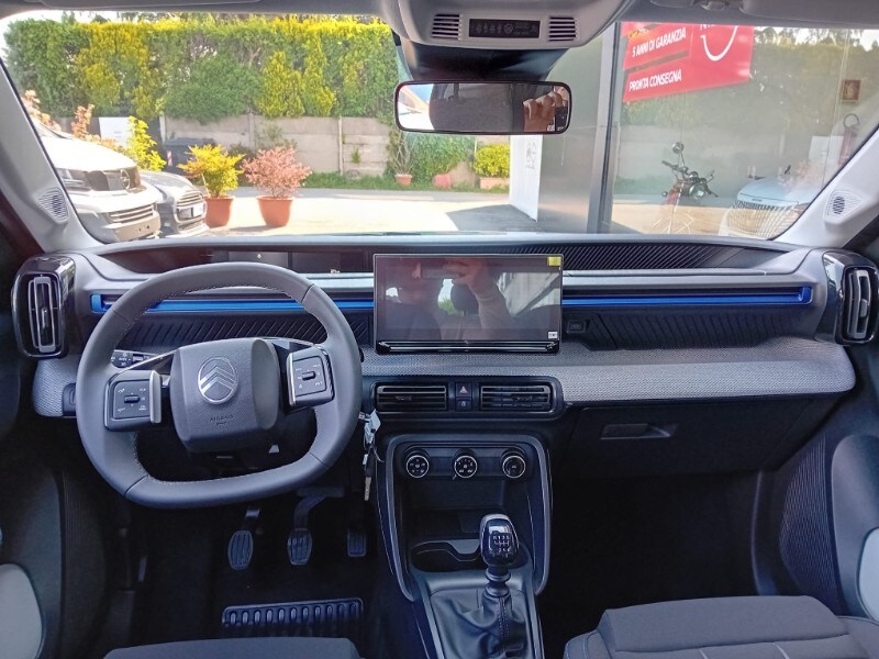 PRONTA CONSEGNA - AUTOVETTURA A KM0 UFFICIALE CITOREN ITALIA - IMMATRICOLATA 03/2026 - ALLESTIMENTO PURETECH 100CV PLUS - Sensori di parcheggio posteriori - Accensione automatica dei fari anabbaglianti - Citroën Connect Box (scatola telematica) - Citroën Head-Up Display - Climatizzatore manuale - Chiusura centralizzata con pulsante di sicurezza e visualizzazione permanente delle porte chiuse - Calotte degli specchietti retrovisori esterni in tinta in massa - Rivestimento passaruota Matt Black - Equipaggiamento di sicurezza (• ABS, REF, AFU, ESP • Hill Assist • Airbag anteriori, laterali e a tendina • Rilevamento di gonfiaggio insufficiente • Servosterzo) - 6 airbag - Proiettori anteriori alogeni con firma luminosa a LED - Spoiler posteriore - Alzacristalli anteriori elettrici (abbassamento sequenziale) - 1 presa USB-C sul cruscotto (ricarica rapida 3A) - Pack Safety (• Active Safety brake • Avviso di attraversamento linea involontario attivo • Riconoscimento dei limiti di velocità e raccomandazioni • Allarme di attenzione del conducente • Regolatore e limitatore di velocità • Avviso di rischio di collisione) - Maniglie esterne delle porte nero opaco - Specchietti esterni elettrici - 2 altoparlanti - Radiocomando al volante - Sospensioni Citroën Advanced Comfort® - Spia cintura di sicurezza conducente e passeggeri – Volante in eco-pelle regolabile in altezza e profondità - Cerchi con copertura integrale da 17'’ - Barre al tetto in colore Nero Lucido - Piastre protettive sottoscocca anteriori e posteriori - My Citroën Drive con navigazione su schermo centrale da 10” ( • Mirroring wireless (Senza fili) Apple CarPlay® e Android Auto • Sistema audio digitale (DAB) da 6 HP) - Sedili Citroën Advanced Comfort® allestimento Urban Grey/Sedili in tessuto - Sedile posteriore abbattibile 2/3 - 1/3 - Sedile di guida regolabile in altezza - Specchietto retrovisore laterale regolabile elettricamente con sbrinatore - Alzacristalli elettrici anteriori con abbassamento automatico per il conducente e abbassamento automatico per il passeggero, alzacristalli posteriori manuali - Clip colorate paraurti anteriore (Bianco/Rosso/Giallo Limone a seconda delle tonalità) - 1 presa USB-C sul cruscotto + 2 prese USB-C nella seconda fila (ricarica rapida 3A)