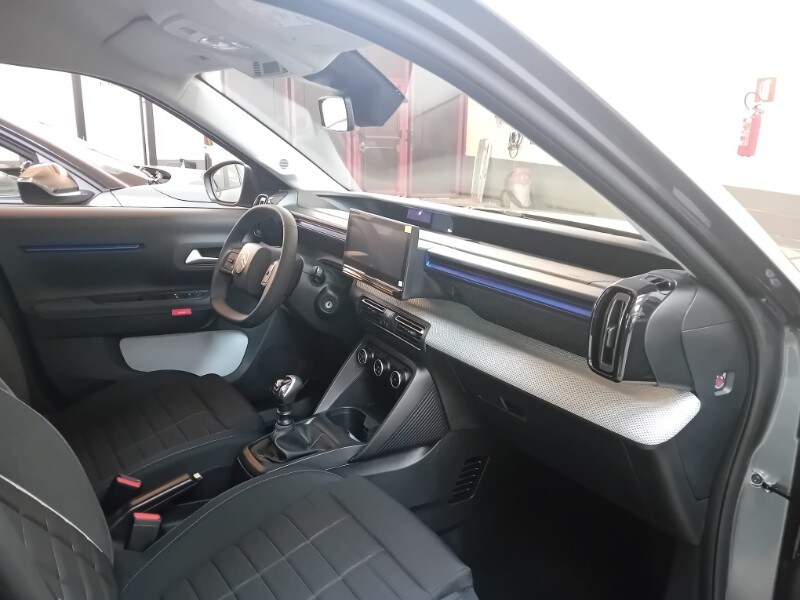 PRONTA CONSEGNA - AUTOVETTURA A KM0 UFFICIALE CITOREN ITALIA - IMMATRICOLATA 03/2026 - ALLESTIMENTO PURETECH 100CV PLUS - Sensori di parcheggio posteriori - Accensione automatica dei fari anabbaglianti - Citroën Connect Box (scatola telematica) - Citroën Head-Up Display - Climatizzatore manuale - Chiusura centralizzata con pulsante di sicurezza e visualizzazione permanente delle porte chiuse - Calotte degli specchietti retrovisori esterni in tinta in massa - Rivestimento passaruota Matt Black - Equipaggiamento di sicurezza (• ABS, REF, AFU, ESP • Hill Assist • Airbag anteriori, laterali e a tendina • Rilevamento di gonfiaggio insufficiente • Servosterzo) - 6 airbag - Proiettori anteriori alogeni con firma luminosa a LED - Spoiler posteriore - Alzacristalli anteriori elettrici (abbassamento sequenziale) - 1 presa USB-C sul cruscotto (ricarica rapida 3A) - Pack Safety (• Active Safety brake • Avviso di attraversamento linea involontario attivo • Riconoscimento dei limiti di velocità e raccomandazioni • Allarme di attenzione del conducente • Regolatore e limitatore di velocità • Avviso di rischio di collisione) - Maniglie esterne delle porte nero opaco - Specchietti esterni elettrici - 2 altoparlanti - Radiocomando al volante - Sospensioni Citroën Advanced Comfort® - Spia cintura di sicurezza conducente e passeggeri – Volante in eco-pelle regolabile in altezza e profondità - Cerchi con copertura integrale da 17'’ - Barre al tetto in colore Nero Lucido - Piastre protettive sottoscocca anteriori e posteriori - My Citroën Drive con navigazione su schermo centrale da 10” ( • Mirroring wireless (Senza fili) Apple CarPlay® e Android Auto • Sistema audio digitale (DAB) da 6 HP) - Sedili Citroën Advanced Comfort® allestimento Urban Grey/Sedili in tessuto - Sedile posteriore abbattibile 2/3 - 1/3 - Sedile di guida regolabile in altezza - Specchietto retrovisore laterale regolabile elettricamente con sbrinatore - Alzacristalli elettrici anteriori con abbassamento automatico per il conducente e abbassamento automatico per il passeggero, alzacristalli posteriori manuali - Clip colorate paraurti anteriore (Bianco/Rosso/Giallo Limone a seconda delle tonalità) - 1 presa USB-C sul cruscotto + 2 prese USB-C nella seconda fila (ricarica rapida 3A)