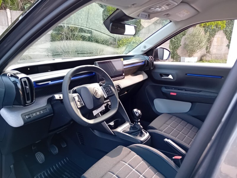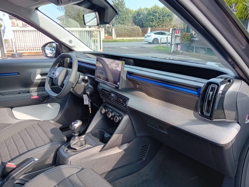 PRONTA CONSEGNA - AUTOVETTURA A KM0 UFFICIALE CITOREN ITALIA - IMMATRICOLATA 02/2026 - ALLESTIMENTO PURETECH 100CV PLUS - Sensori di parcheggio posteriori - Accensione automatica dei fari anabbaglianti - Citroën Connect Box (scatola telematica) - Citroën Head-Up Display - Climatizzatore manuale - Chiusura centralizzata con pulsante di sicurezza e visualizzazione permanente delle porte chiuse - Calotte degli specchietti retrovisori esterni in tinta in massa - Rivestimento passaruota Matt Black - Equipaggiamento di sicurezza (• ABS, REF, AFU, ESP • Hill Assist • Airbag anteriori, laterali e a tendina • Rilevamento di gonfiaggio insufficiente • Servosterzo) - 6 airbag - Proiettori anteriori alogeni con firma luminosa a LED - Spoiler posteriore - Alzacristalli anteriori elettrici (abbassamento sequenziale) - 1 presa USB-C sul cruscotto (ricarica rapida 3A) - Pack Safety (• Active Safety brake • Avviso di attraversamento linea involontario attivo • Riconoscimento dei limiti di velocità e raccomandazioni • Allarme di attenzione del conducente • Regolatore e limitatore di velocità • Avviso di rischio di collisione) - Maniglie esterne delle porte nero opaco - Specchietti esterni elettrici - 2 altoparlanti - Radiocomando al volante - Sospensioni Citroën Advanced Comfort® - Spia cintura di sicurezza conducente e passeggeri – Volante in eco-pelle regolabile in altezza e profondità - Cerchi con copertura integrale da 17'’ - Barre al tetto in colore Nero Lucido - Piastre protettive sottoscocca anteriori e posteriori - My Citroën Drive con navigazione su schermo centrale da 10” ( • Mirroring wireless (Senza fili) Apple CarPlay® e Android Auto • Sistema audio digitale (DAB) da 6 HP) - Sedili Citroën Advanced Comfort® allestimento Urban Grey/Sedili in tessuto - Sedile posteriore abbattibile 2/3 - 1/3 - Sedile di guida regolabile in altezza - Specchietto retrovisore laterale regolabile elettricamente con sbrinatore - Alzacristalli elettrici anteriori con abbassamento automatico per il conducente e abbassamento automatico per il passeggero, alzacristalli posteriori manuali - Clip colorate paraurti anteriore (Bianco/Rosso/Giallo Limone a seconda delle tonalità) - 1 presa USB-C sul cruscotto + 2 prese USB-C nella seconda fila (ricarica rapida 3A)