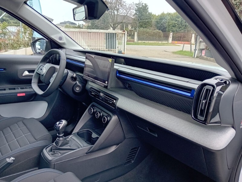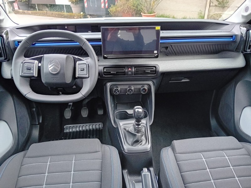 PRONTA CONSEGNA - AUTOVETTURA A KM0 UFFICIALE CITOREN ITALIA - IMMATRICOLATA 02/2026 - ALLESTIMENTO PURETECH 100CV PLUS - Sensori di parcheggio posteriori - Accensione automatica dei fari anabbaglianti - Citroën Connect Box (scatola telematica) - Citroën Head-Up Display - Climatizzatore manuale - Chiusura centralizzata con pulsante di sicurezza e visualizzazione permanente delle porte chiuse - Calotte degli specchietti retrovisori esterni in tinta in massa - Rivestimento passaruota Matt Black - Equipaggiamento di sicurezza (• ABS, REF, AFU, ESP • Hill Assist • Airbag anteriori, laterali e a tendina • Rilevamento di gonfiaggio insufficiente • Servosterzo) - 6 airbag - Proiettori anteriori alogeni con firma luminosa a LED - Spoiler posteriore - Alzacristalli anteriori elettrici (abbassamento sequenziale) - 1 presa USB-C sul cruscotto (ricarica rapida 3A) - Pack Safety (• Active Safety brake • Avviso di attraversamento linea involontario attivo • Riconoscimento dei limiti di velocità e raccomandazioni • Allarme di attenzione del conducente • Regolatore e limitatore di velocità • Avviso di rischio di collisione) - Maniglie esterne delle porte nero opaco - Specchietti esterni elettrici - 2 altoparlanti - Radiocomando al volante - Sospensioni Citroën Advanced Comfort® - Spia cintura di sicurezza conducente e passeggeri – Volante in eco-pelle regolabile in altezza e profondità - Cerchi con copertura integrale da 17'’ - Barre al tetto in colore Nero Lucido - Piastre protettive sottoscocca anteriori e posteriori - My Citroën Drive con navigazione su schermo centrale da 10” ( • Mirroring wireless (Senza fili) Apple CarPlay® e Android Auto • Sistema audio digitale (DAB) da 6 HP) - Sedili Citroën Advanced Comfort® allestimento Urban Grey/Sedili in tessuto - Sedile posteriore abbattibile 2/3 - 1/3 - Sedile di guida regolabile in altezza - Specchietto retrovisore laterale regolabile elettricamente con sbrinatore - Alzacristalli elettrici anteriori con abbassamento automatico per il conducente e abbassamento automatico per il passeggero, alzacristalli posteriori manuali - Clip colorate paraurti anteriore (Bianco/Rosso/Giallo Limone a seconda delle tonalità) - 1 presa USB-C sul cruscotto + 2 prese USB-C nella seconda fila (ricarica rapida 3A)