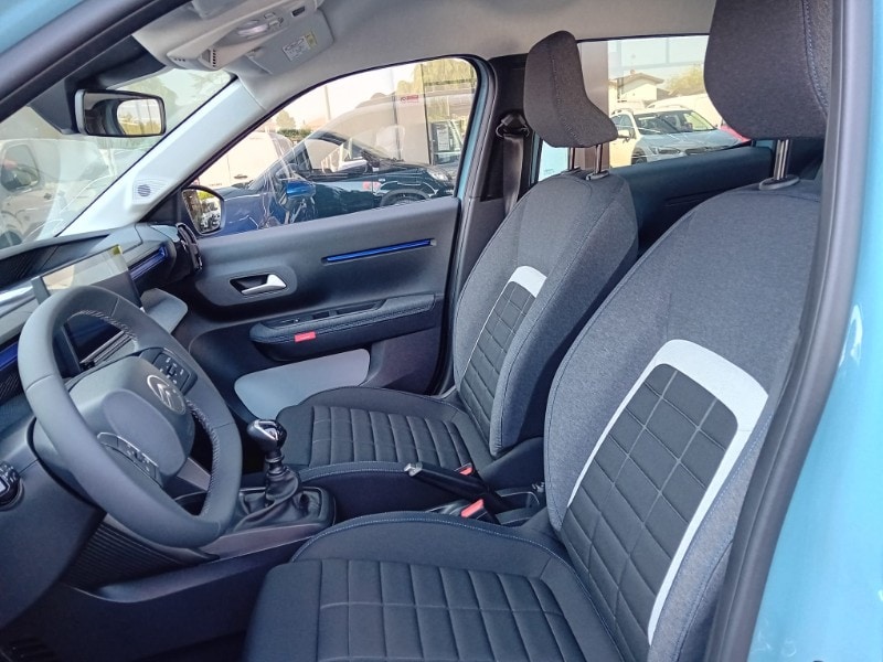 PRONTA CONSEGNA - AUTOVETTURA A KM0 UFFICIALE CITOREN ITALIA - IMMATRICOLATA 03/2026 - ALLESTIMENTO PURETECH 100CV PLUS - Sensori di parcheggio posteriori - Accensione automatica dei fari anabbaglianti - Citroën Connect Box (scatola telematica) - Citroën Head-Up Display - Climatizzatore manuale - Chiusura centralizzata con pulsante di sicurezza e visualizzazione permanente delle porte chiuse - Calotte degli specchietti retrovisori esterni in tinta in massa - Rivestimento passaruota Matt Black - Equipaggiamento di sicurezza (• ABS, REF, AFU, ESP • Hill Assist • Airbag anteriori, laterali e a tendina • Rilevamento di gonfiaggio insufficiente • Servosterzo) - 6 airbag - Proiettori anteriori alogeni con firma luminosa a LED - Spoiler posteriore - Alzacristalli anteriori elettrici (abbassamento sequenziale) - 1 presa USB-C sul cruscotto (ricarica rapida 3A) - Pack Safety (• Active Safety brake • Avviso di attraversamento linea involontario attivo • Riconoscimento dei limiti di velocità e raccomandazioni • Allarme di attenzione del conducente • Regolatore e limitatore di velocità • Avviso di rischio di collisione) - Maniglie esterne delle porte nero opaco - Specchietti esterni elettrici - 2 altoparlanti - Radiocomando al volante - Sospensioni Citroën Advanced Comfort® - Spia cintura di sicurezza conducente e passeggeri – Volante in eco-pelle regolabile in altezza e profondità - Cerchi con copertura integrale da 17'’ - Barre al tetto in colore Nero Lucido - Piastre protettive sottoscocca anteriori e posteriori - My Citroën Drive con navigazione su schermo centrale da 10” ( • Mirroring wireless (Senza fili) Apple CarPlay® e Android Auto • Sistema audio digitale (DAB) da 6 HP) - Sedili Citroën Advanced Comfort® allestimento Urban Grey/Sedili in tessuto - Sedile posteriore abbattibile 2/3 - 1/3 - Sedile di guida regolabile in altezza - Specchietto retrovisore laterale regolabile elettricamente con sbrinatore - Alzacristalli elettrici anteriori con abbassamento automatico per il conducente e abbassamento automatico per il passeggero, alzacristalli posteriori manuali - Clip colorate paraurti anteriore (Bianco/Rosso/Giallo Limone a seconda delle tonalità) - 1 presa USB-C sul cruscotto + 2 prese USB-C nella seconda fila (ricarica rapida 3A)