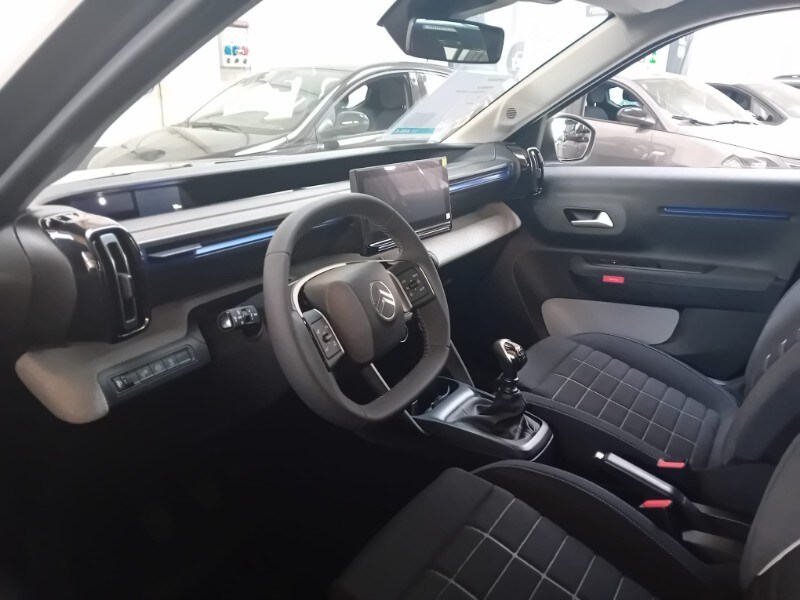 PRONTA CONSEGNA - AUTOVETTURA A KM0 UFFICIALE CITOREN ITALIA - IMMATRICOLATA 03/2026 - ALLESTIMENTO PURETECH 100CV PLUS - Sensori di parcheggio posteriori - Accensione automatica dei fari anabbaglianti - Citroën Connect Box (scatola telematica) - Citroën Head-Up Display - Climatizzatore manuale - Chiusura centralizzata con pulsante di sicurezza e visualizzazione permanente delle porte chiuse - Calotte degli specchietti retrovisori esterni in tinta in massa - Rivestimento passaruota Matt Black - Equipaggiamento di sicurezza (• ABS, REF, AFU, ESP • Hill Assist • Airbag anteriori, laterali e a tendina • Rilevamento di gonfiaggio insufficiente • Servosterzo) - 6 airbag - Proiettori anteriori alogeni con firma luminosa a LED - Spoiler posteriore - Alzacristalli anteriori elettrici (abbassamento sequenziale) - 1 presa USB-C sul cruscotto (ricarica rapida 3A) - Pack Safety (• Active Safety brake • Avviso di attraversamento linea involontario attivo • Riconoscimento dei limiti di velocità e raccomandazioni • Allarme di attenzione del conducente • Regolatore e limitatore di velocità • Avviso di rischio di collisione) - Maniglie esterne delle porte nero opaco - Specchietti esterni elettrici - 2 altoparlanti - Radiocomando al volante - Sospensioni Citroën Advanced Comfort® - Spia cintura di sicurezza conducente e passeggeri – Volante in eco-pelle regolabile in altezza e profondità - Cerchi con copertura integrale da 17'’ - Barre al tetto in colore Nero Lucido - Piastre protettive sottoscocca anteriori e posteriori - My Citroën Drive con navigazione su schermo centrale da 10” ( • Mirroring wireless (Senza fili) Apple CarPlay® e Android Auto • Sistema audio digitale (DAB) da 6 HP) - Sedili Citroën Advanced Comfort® allestimento Urban Grey/Sedili in tessuto - Sedile posteriore abbattibile 2/3 - 1/3 - Sedile di guida regolabile in altezza - Specchietto retrovisore laterale regolabile elettricamente con sbrinatore - Alzacristalli elettrici anteriori con abbassamento automatico per il conducente e abbassamento automatico per il passeggero, alzacristalli posteriori manuali - Clip colorate paraurti anteriore (Bianco/Rosso/Giallo Limone a seconda delle tonalità) - 1 presa USB-C sul cruscotto + 2 prese USB-C nella seconda fila (ricarica rapida 3A)